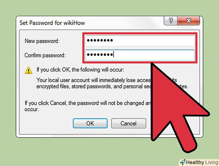 Введіть новий пароль і підтвердіть його. натисніть на кнопку ОК.