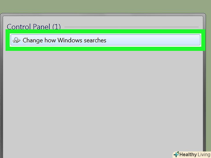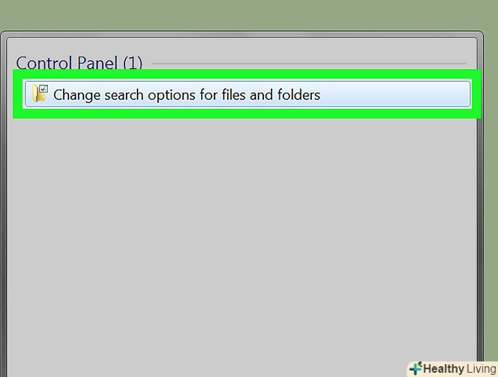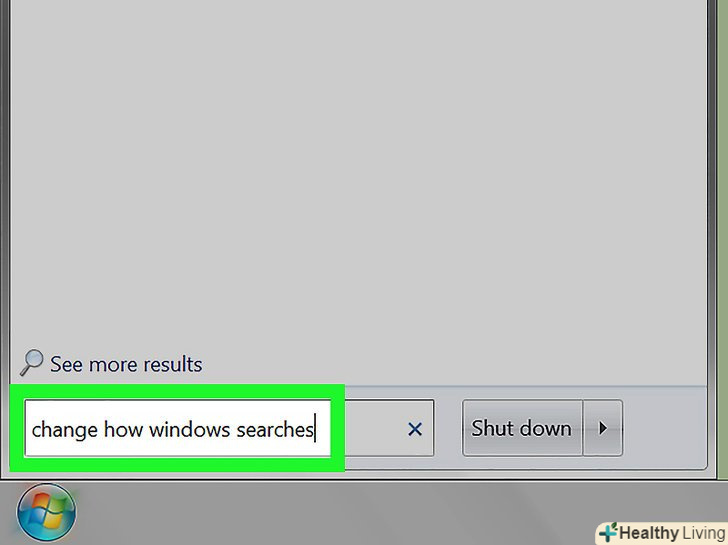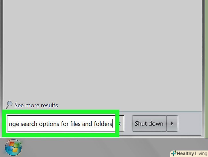У рядку пошуку введітьЗміна параметрів пошуку для файлів і папок. рядок пошуку знаходиться в нижній частині меню "Пуск". Почнеться пошук опції, яку потрібно змінити.