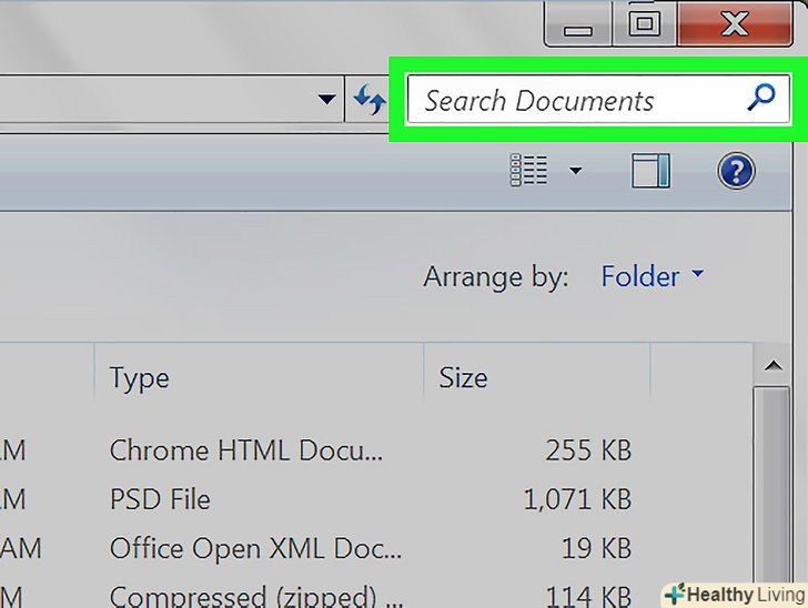 Відкрийте папку, в якій потрібно знайти файл.щоб знайти файл за вмістом у певній папці, спочатку відкрийте її.- Наприклад, якщо ви хочете знайти файл у папці «Документи», відкрийте папку «Документи».