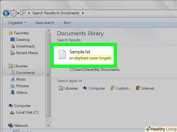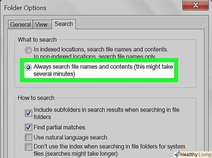 Встановіть прапорець біля «завжди шукати по іменах файлів і вмісту".ця опція знаходиться в розділі»Що шукати".- Якщо цей прапорець вже встановлено, пошук по вмісту файлів активовано.