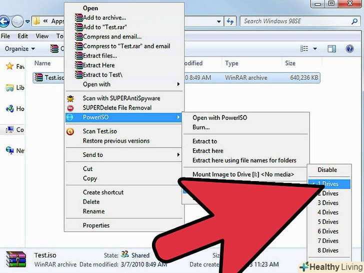 Клацніть правою кнопкою миші на файлі ISO, який ви хочете встановити. натисніть Power ISO-встановити кількість приводів-1 привід, наприклад.