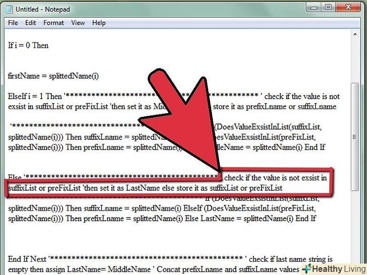 - Розберіть приклад простої програми.уявіть, що програма повинна замінювати поєднання букв " foo " в текстовому файлі. Програма прочитає кожен рядок в цьому файлі, пошукає потрібне поєднання в кожному рядку і замінить його на інше. Повторювані кроки починаються з прогалин - в ідеалі так повинно бути і в цьому коді. Початковий начерк псевдокода може виглядати так: