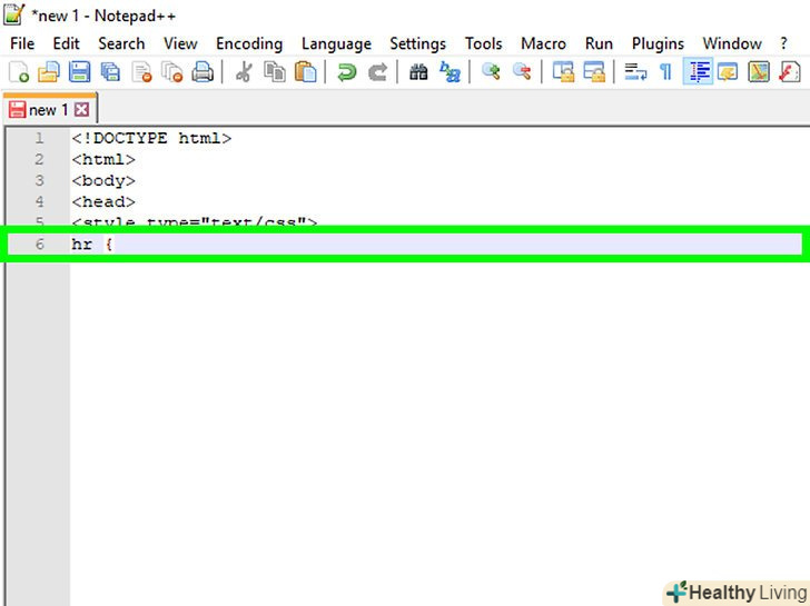 Введіть HR {. це тег CSS для стилізації горизонтальної лінії. Додайте його після тегу "style" в заголовку або в зовнішньому файлі CSS.