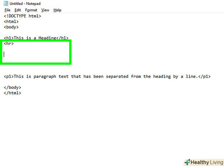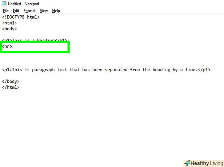 Перемістіть курсор після тегу «hr» на новий рядок, натиснувши↵ Enter . Тепер тег LT;HRgt; повинен знаходитися в окремому рядку.