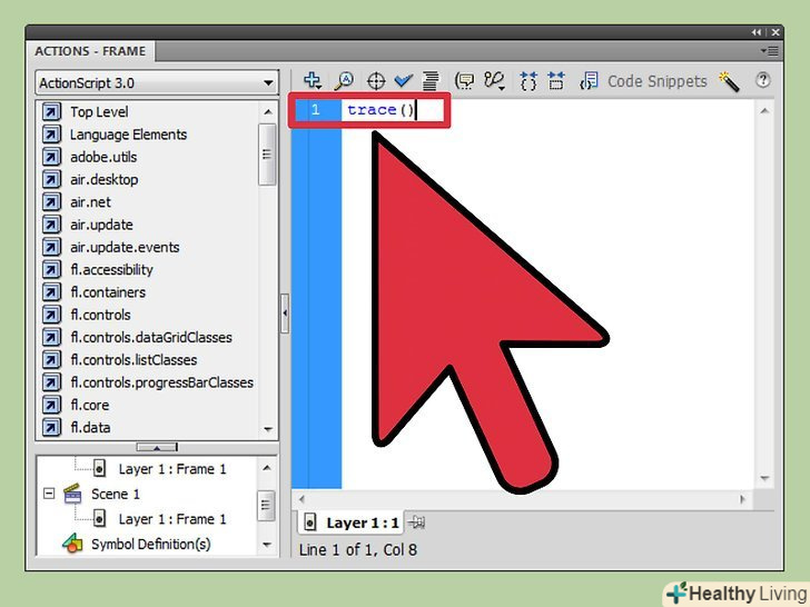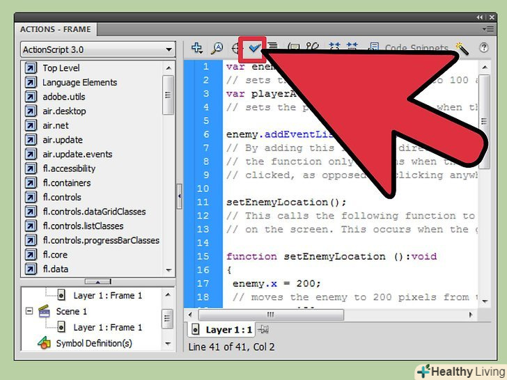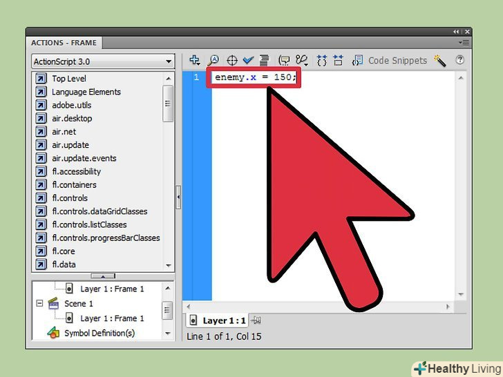 Задайте властивості об'єкта.для цього відкрийте меню "Змінити «і виберіть пункт» перетворити в символ" (або натисніть F8). У вікні "перетворити в символ «присвойте об'єкту легко впізнаване ім'я, наприклад,» ворог" (enemy).- Знайдіть вікно "Властивості". У верхній частині вікна розташоване порожнє текстове поле, позначене як "Ім'я зразка" (якщо навести на це поле курсор). Введіть те ж ім'я, яке ви вводили при перетворенні об'єкта в символ (в нашому прикладі «ворог»). Це призведе до створення унікального імені, яке можна використовувати в AS3 коді.