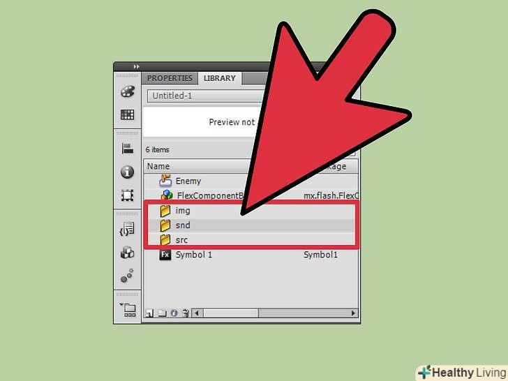 Створення папок проекту.якщо ви створюєте гру з декількома зображеннями і звуковими файлами, створіть кілька папок. Це дозволить вам не заплутатися в різних елементах, а також зберігати пакети у відповідних папках.- Створіть базову папку проекту. У базовій папці необхідно створити підпапку "IMG«, де будуть зберігатися зображення, підпапку» SND «для звукових файлів і підпапку» SRC" з пакетами і кодом гри.