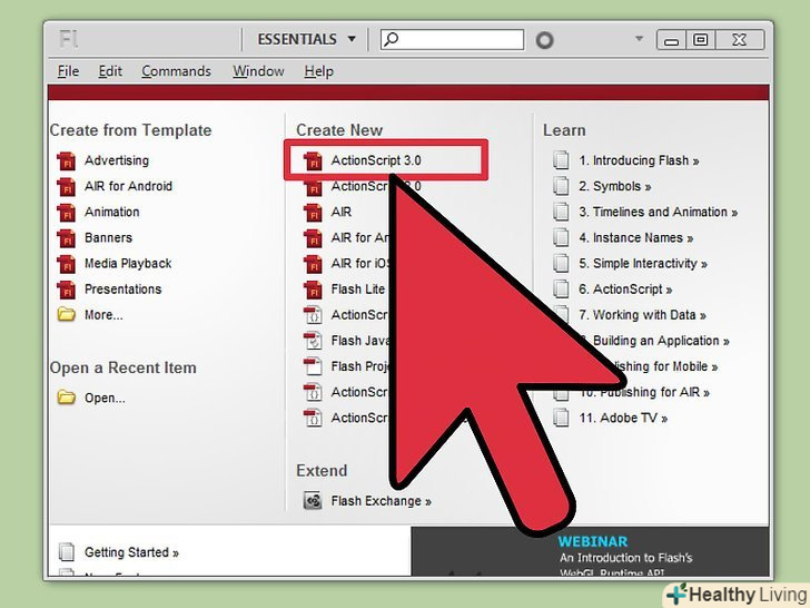 Створіть об'єкти, з якими буде взаємодіяти гравець.до об'єктів можна віднести спрайти, персонажів або відеокліпи. У нашому прикладі простої гри ви будете створювати прямокутник.- Запустіть Flash Professional. Створіть новий проект ActionScript 3. [1]