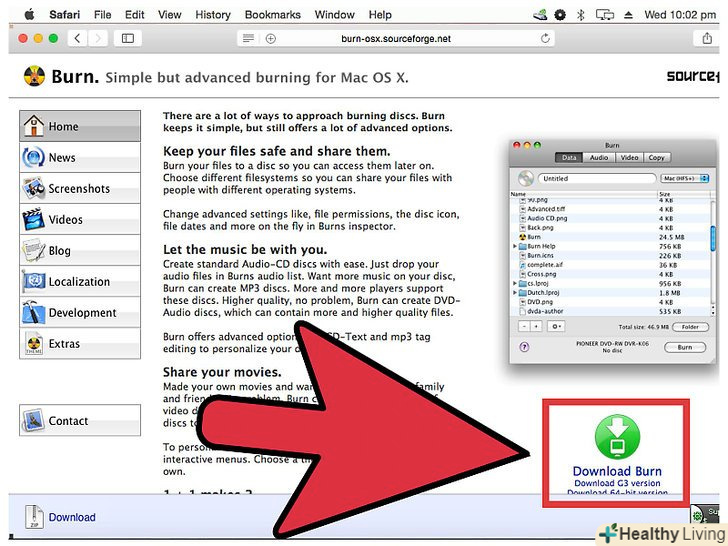 Скачайте і встановіть програму Burn.це безкоштовна програма, яка на сьогоднішній день є кращою програмою для запису фільмів на диски в Mac OS (iDVD більше не поширюється). Ви можете завантажити цю програму на сайті burn-osx.sourceforge.net/Pages/English/home.html.