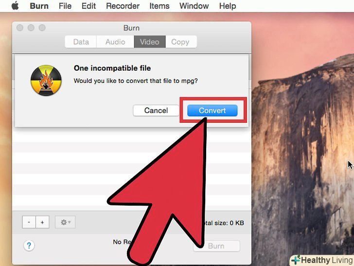Натисніть "Так", коли Вам буде запропоновано перетворити файл. будь-які файли, формат яких відмінний від MPG, будуть автоматично перетворені. Це займе деякий час (залежно від розміру відеофайлу та продуктивності вашого комп'ютера). У спливаючому меню у вікні перетворення виберіть "NTSC«, якщо ви знаходитесь в США, або» PAL", якщо ви знаходитесь в Європі.- Файли QuickTime з DRM-захистом не будуть перетворені.