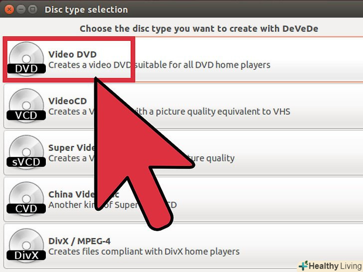 - Виберіть тип DVD. Тип більшості порожніх DVD-дисків-це DVD5 (одношаровий диск розміром 4,37 ГБ). Диски типу DVD9-це двошарові диски розміром 7,95 ГБ.