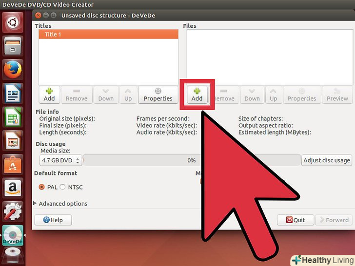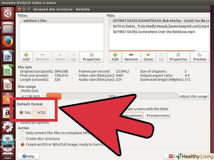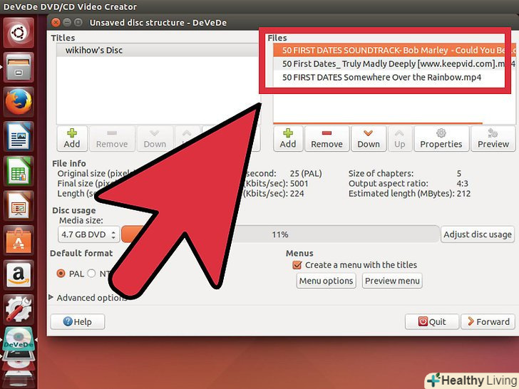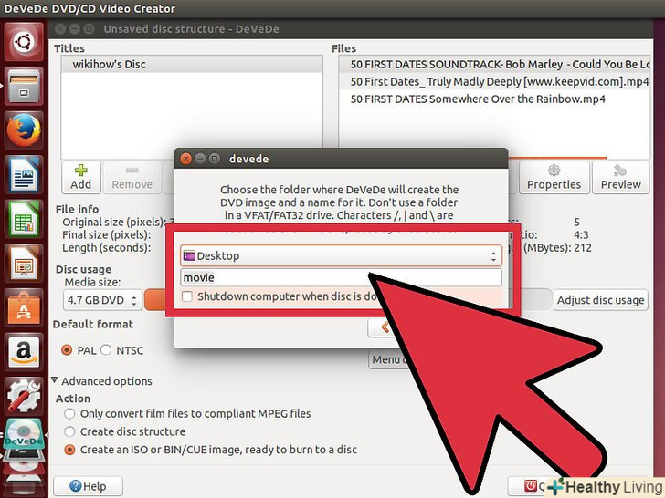 Скачайте і встановіть DeVeDe.це потужна безкоштовна програма для створення образів дисків в Linux. Ви можете встановити її через термінал, ввівши sudo apt-get install devede.