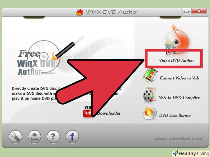 Скачайте і встановіть Winx DVD Author. це безкоштовна програма, яка підтримує практично будь-який формат відео і легко створює диски, які можна відтворювати на будь-якому DVD-плеєрі.[1]- Ви можете завантажити цю програму з сайтуwinxdvd.com/dvd-author / . вона не містить шкідливий код.