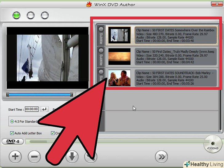 Повторіть попередній крок для вибору додаткових відеофайлів, які будуть записані на диск (наприклад, якщо ви записуєте кілька серій серіалу). розмір вільного місця на диску буде відображатися в нижній частині вікна WinX DVD Author.- Ви можете змінити порядок розташування відеофайлів. Для цього клацніть по потрібному файлу правою кнопкою миші і виберіть "Наверх»або "Вниз".