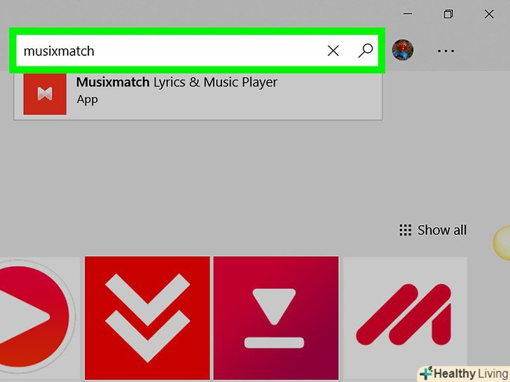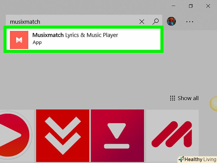 Введітьmusixmatch у рядку пошуку.відкриється список результатів пошуку.