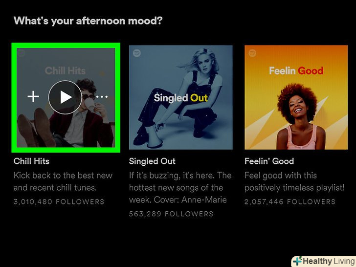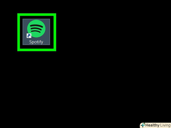 - Запустіть Spotify.натисніть на значок у вигляді трьох вигнутих чорних ліній на зеленому тлі в папці "програми".