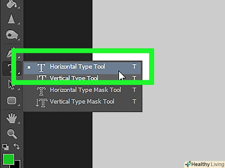 Клацніть по інструменту "Текст". цей значок у вигляді літери «T» знаходиться поруч з інструментом «Перо» на панелі інструментів в лівій частині вікна. Відкриється випадаюче меню.