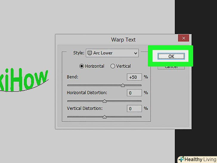 - Щоб збільшити або зменшити деформацію тексту, скористайтеся повзунками» спотворення по горизонталі «і»спотворення по вертикалі".