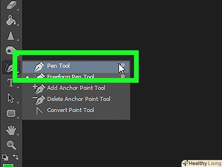 Клацніть по інструменту "Перо". цей значок у вигляді наконечника пір'яної ручки знаходиться в нижній частині панелі інструментів в лівій частині вікна.- Або просто натиснітьP, щоб взяти інструмент «перо».