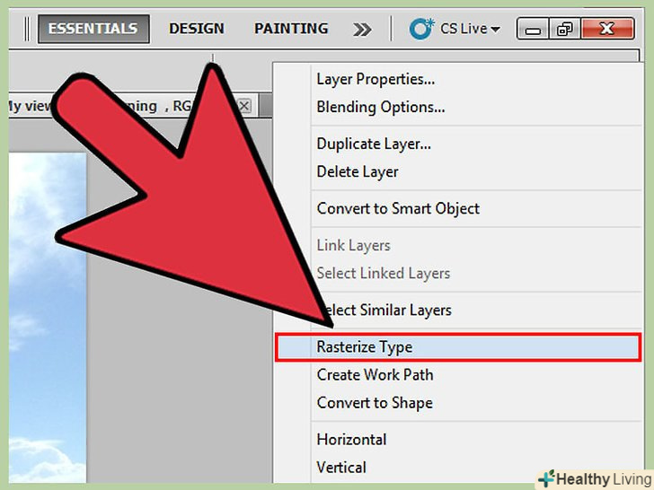 Зрозумійте, що зображення складаються з різних окремих шарів, що включають в себе різні кольори, ефекти, Графічні об'єкти і текст.всі ці шари складають підсумковий варіант зображення в Photoshop. Вони не тільки служать джерелом остаточного варіанту файлу JPEG, але і дають остаточний варіант файлу PSD. Якщо вам це ні про що не говорить, то знайте, що PSD є скороченим найменуванням формату документів Photoshop.[1]- Різні шари зображення можуть бути зроблені видимими або невидимими. Їх також можна растрировать для видалення певних сегментів шару. При растрировании зображення перетворюється в графіку, якою легко маніпулювати на власний розсуд.[2]