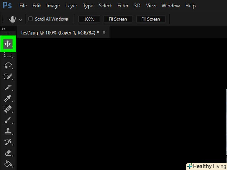 Натисніть на інструмент "Переміщення". це перша кнопка на панелі інструментів в лівій частині екрана. Вона виглядає як курсор з перехрестям.