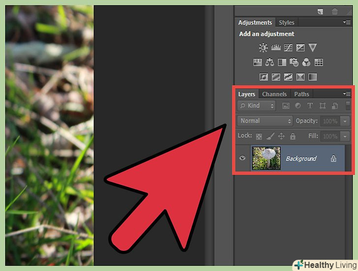 Відкрийте панель Layers.для цього відкрийте меню "Window", потім виберіть у списку" Layers", якщо ця панель ще не активована. Пам'ятайте, ви не змінюєте кольору самого зображення, ви створюєте інвертований шар поверх нього.- Якщо ви хочете інвертувати кольори якоїсь окремої обрости зображення, то виберіть інструмент виділення (Marquee, Lasso або Magic Wand) і позначте їм потрібну область. Якщо ж ви хочете інвертувати кольору всього зображення, то подібна вибірковість буде зайвою.[2]