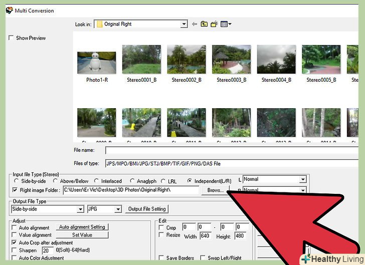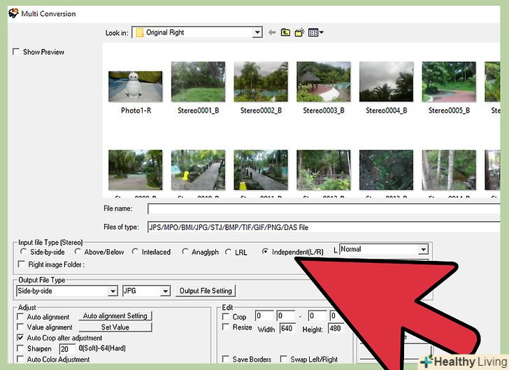 В поле введення типу файлу (Стерео) виберіть незалежний (Л/П). коли ви виберете це, трохи нижче з'явиться поле Папка правого фото.