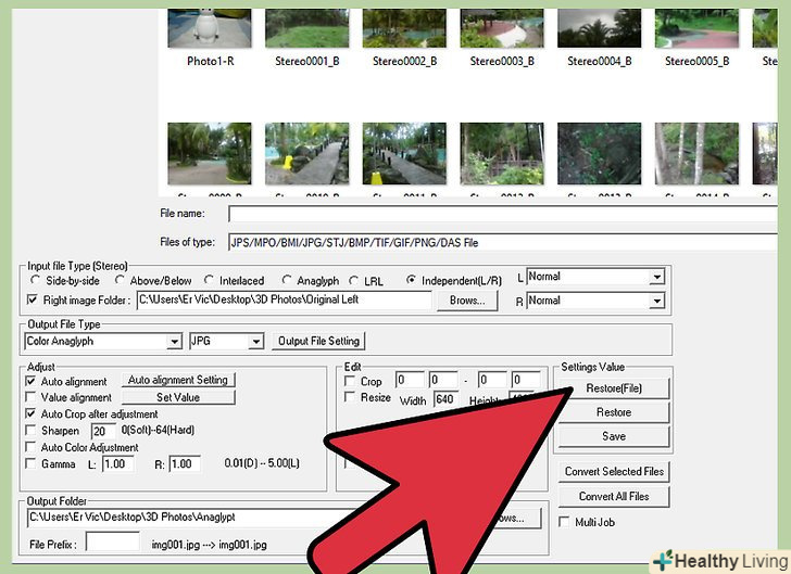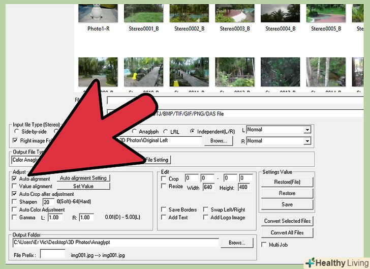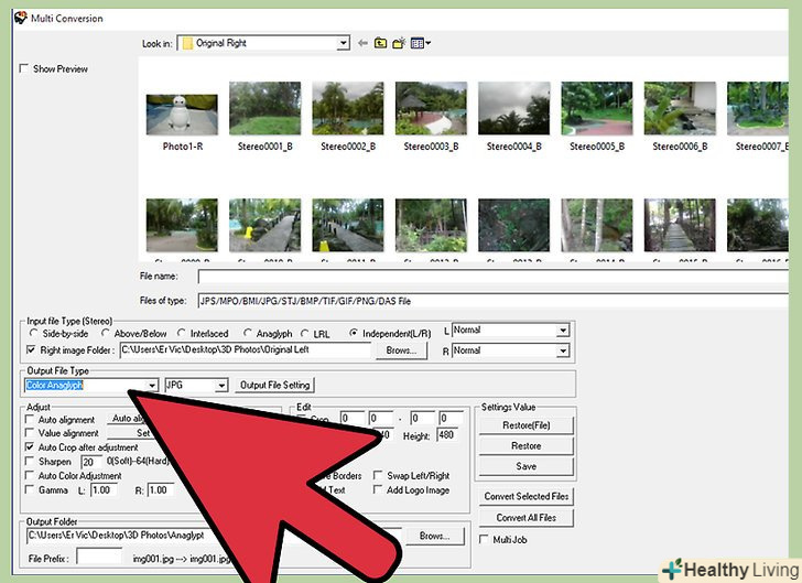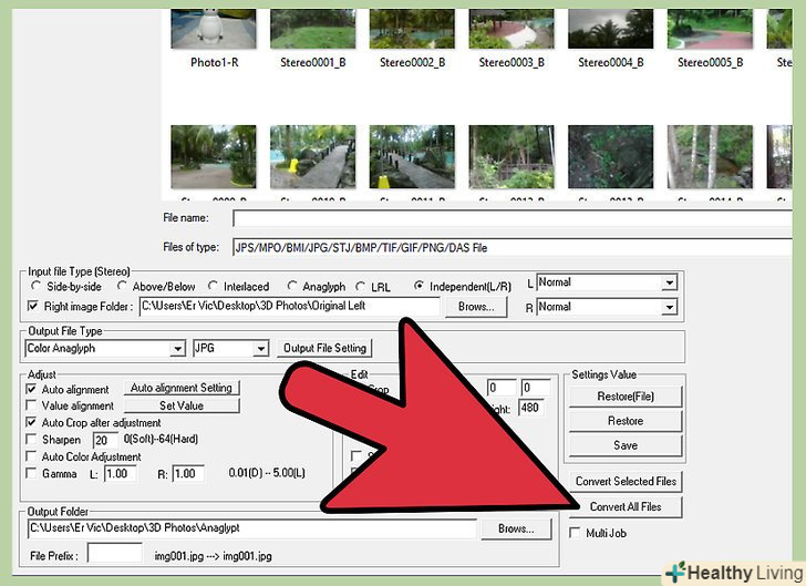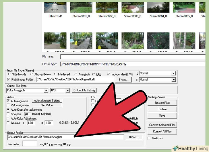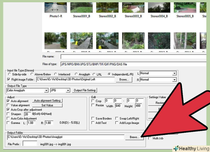 Біля основи встановіть поле готові фото. Це місце, куди ви хочете відправляти нові файли, які створює програма. Пам'ятайте на початку цього посібника, ми запропонували, щоб ви створили папку "анагліф".