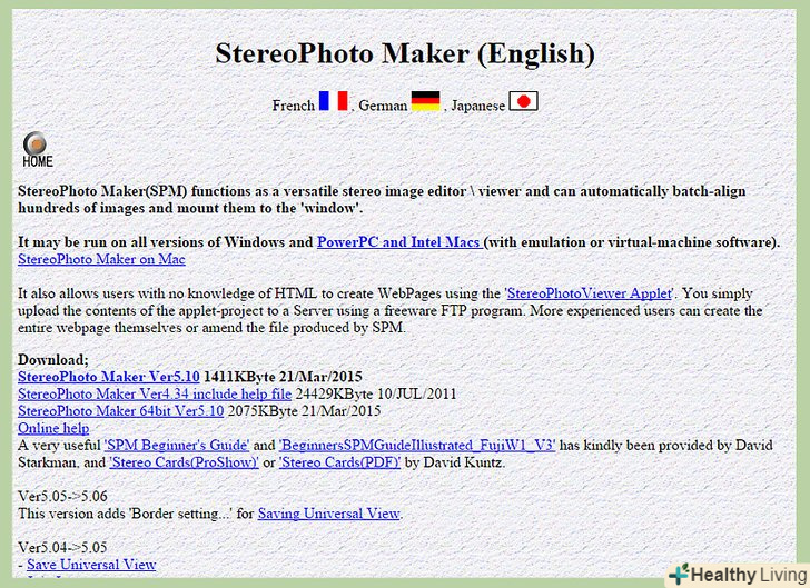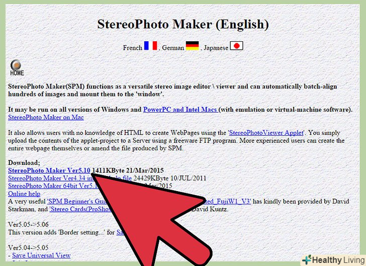 Ідіть за адресоюSterophoto Maker website і вгорі ви побачите:- StereoPhoto Maker Ver4.01 836KByte 22/May/2009