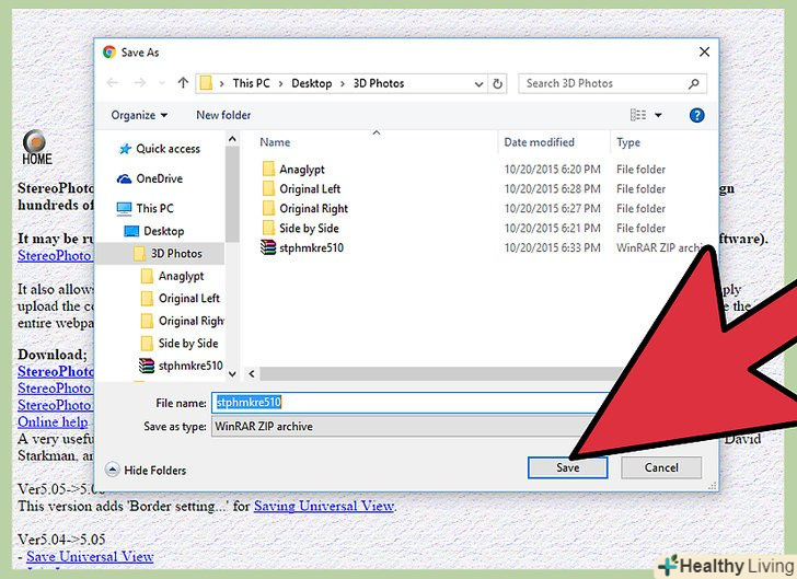 Як тільки завантажили, відкрийте його. Папка, що містить файл " stphmkre.exe", повинна відкритися. Перенесіть її на свій робочий стіл так, щоб пізніше легше було до неї дістатися. Тепер ви можете закрити вікно веб-сайту Stereophoto Maker.