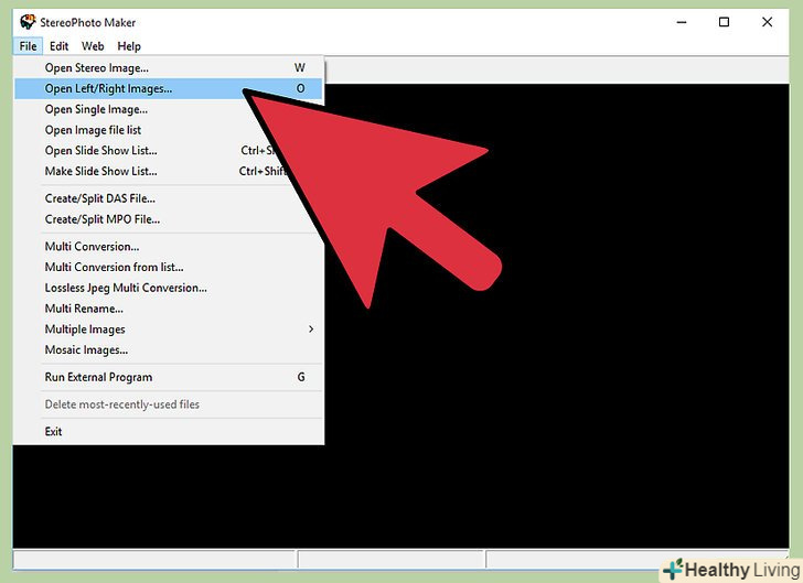 'Виберіть Файл, відкрийте ліву/праву фотографії. програма буде вести вас, запитуючи, де вона може знайти ліву фотографію, а потім, де вона може знайти праву фотографію. Після того як ви виберете зображення, обидва з'являться поруч.