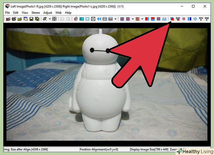 Програма автоматично відрегулює зображення для правильного стерео вікна, виправить обертання зображення, відмінності в розмірі і вертикальні відмінності. якщо ви акуратно сфотографували ці два зображення, не повинно бути ніяких проблем з більшістю зображень, які будуть отримані в результаті.
