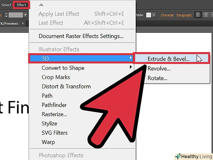 Виділіть текст вашого водяного знака. дотримуйтесь цього шляху: Effect gt; 3D gt; Extrude amp;Bevel