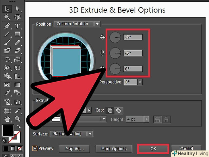 Ви побачите вікно налаштувань 3D Extrude amp; Bevel, введіть номер в поле як на наведеному нижче зображенні.