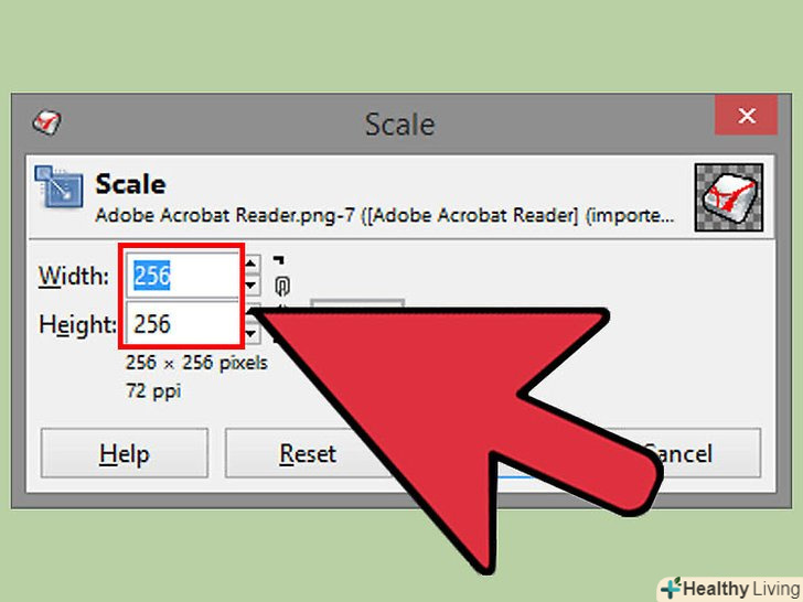 - Виставте масштаби оригінального шару. Відкрийте інструмент Scale tool натисканням⇧ Shift+t і змініть масштаб зображення до 256 х 256 пікселів. Натисніть на зображення image → Fit Canvas to Layers. (Примітка: Якщо ви створюєте набір іконок для OS X, почніть з 512 X 512).
