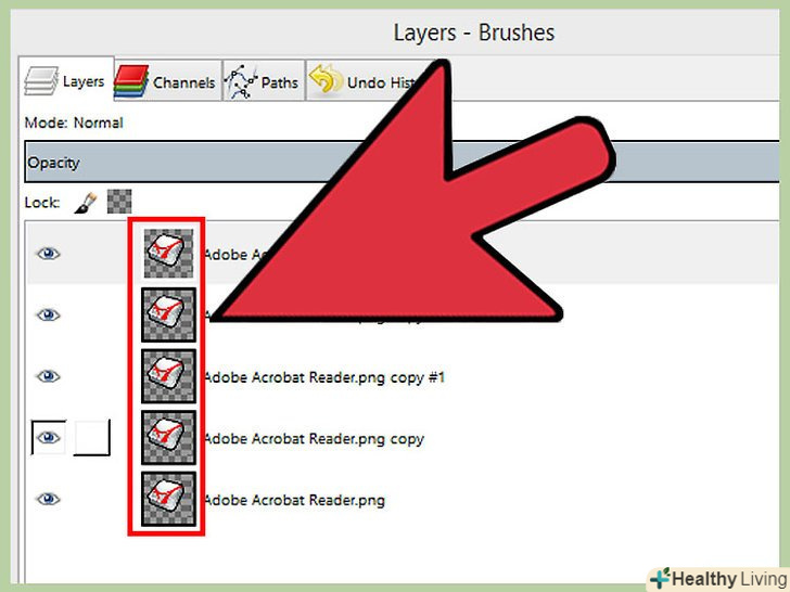 Створіть різні розміри іконки.останнім кроком у створенні значка є забезпечення того, щоб зображення підтримувало всі різні розміри іконки. Це важливо, якщо ви хочете мати можливість використовувати значок в різних областях операційної системи і хочете, щоб вони масштабувалися, коли розмір значка збільшується або зменшується.- Скопіюйте шар. Натисніть на Layer у вікні Layers і натиснітьCtrl+C.