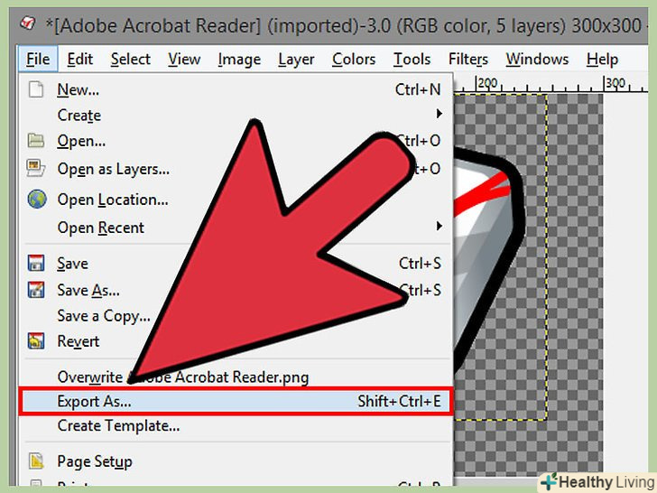 Збережіть зображення у вигляді значка. натисніть меню File → Export.У вікні Export Image змініть розширення у верхньому полі на".ico " і виберіть місце для збереження значка. З'явиться вікно з проханням, чи хочете ви стиснути будь-який з шарів. Встановіть прапорець, щоб стиснути два найбільших шару, якщо ви не використовуєте Windows XP.[1]