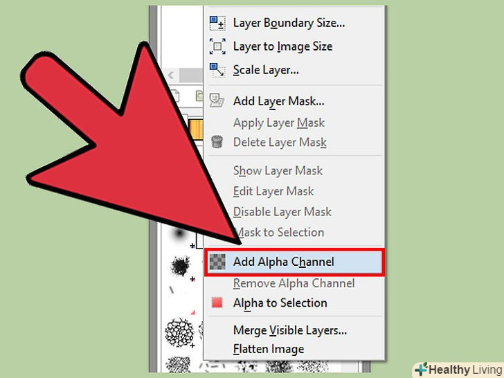Додайте alpha channel. Аlpha channel являє собою шар прозорості. Це дозволить іконці мати прозорий фон, коли ви зітрете частини зображення, які вам не потрібні. Щоб додати альфа-канал, клацніть правою кнопкою миші на шарі у вікні палітри шарів на правій стороні екрана. Виберіть "Add Alpha Channel".