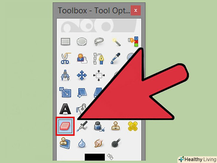 Зітріть маску поверх частини, яку ви хочете зберегти. виберіть ластик з вікна панелі інструментів в лівій стороні екрану. Використовуйте інструмент для видалення червоного шару над тією частиною зображення, яку необхідно зберегти. Наприклад, якщо у вас є зображення телефону, що лежить на столі, і ви хочете використовувати телефон в якості іконки, зітріть червоний шар тільки з телефону.- Використовуйте вкладку Tool Options у вікні Toolbox для налаштування розміру гумки. Ви також можете збільшити, щоб переконатися, що ви перете саме те, що хочете.