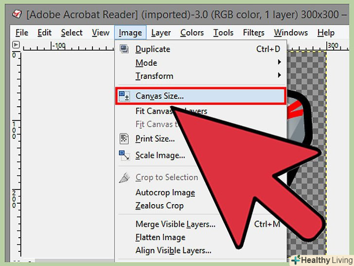 Змініть розмір полотна. натисніть Image → Canvas Size. У вікні клацніть значок ланцюга, щоб роз'єднати ширину і висоту. Змініть розмір полотна до розміру, який добре показує предмет і переконайтеся, що ширина і висота встановлені в це ж значення.- Використовуйте значення Offset для розміщення зображення у вашому новому полотні, перш ніж натиснути кнопку < span class="nowrap" title= " This is not a clickable button; it illustrates the button one should find." style="font-family: Segoe UI, Frutiger, Frutiger Linotype, Dejavu Sans, Helvetica Neue, Arial, sans-serif;letter-spacing:0px;padding:0em .6em; border:1px solid; border-color:#AAA #555 #555 #AAA; -moz-border-radius: 0px; -webkit-border-radius: 0px; border-radius: 0px; background-color: #F2F2F2; background-image: -moz-linear-gradient(top, #FCFCFC, #E0E0E0); background-image: -o-linear-gradient(top, #FCFCFC, #E0E0E0); background-image: -webkit-linear-gradient(top, #FCFCFC, #E0E0E0); background-image: linear-gradient(top, #FCFCFC, #E0E0E0);">Resize.