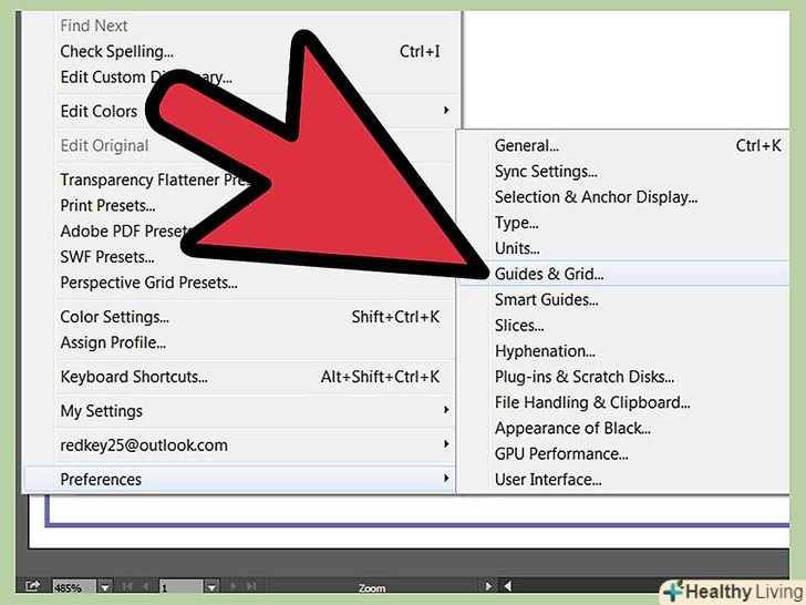 Якщо колір вашої сітки складно розглянути, Ви можете змінити його тут: редагування gt; Установки gt; напрямні і сітка. Не забувайте поміщатися в область чорної лінії, а потім не забудьте видаліть цю лінію і лінію обрізки.