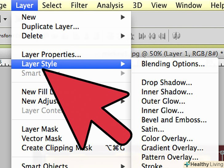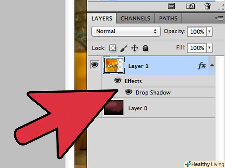 У меню Layers, виберіть шар з фотографією або фотооб'єктом, до якого ви хочете додати тінь.