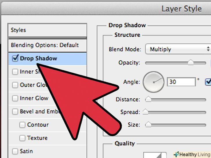 В палітрі ефектів, клікніть на іконку Layer Styles, потім, в випадаючому списку виберіть Drop Shadows.