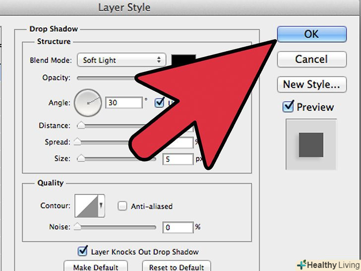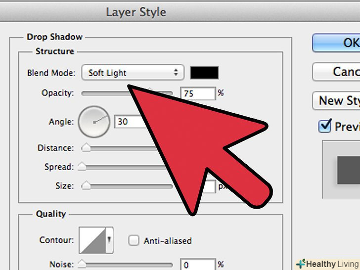 Щоб змінити відображення тіні, натисніть двічі на значок fx, розташований на відповідному шарі. Відкриється діалог налаштувань стилю тіней.