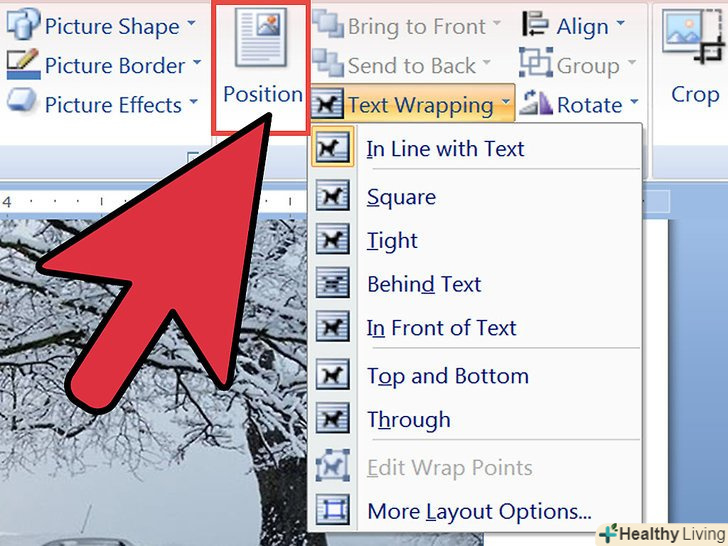 - Натисніть на обтічність тексту, вибравши опцію Перед текстом. Натисніть ОК. пересуньте картинку в будь-яке місце.
