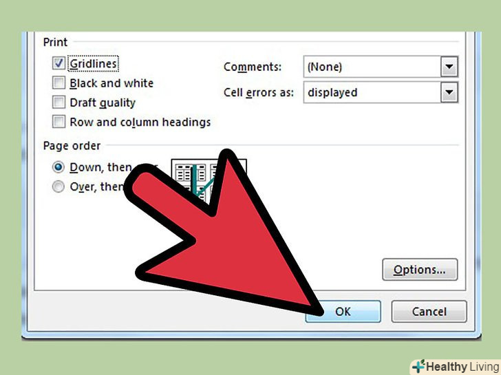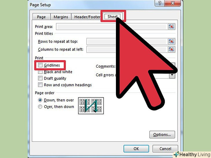 Відкрийте вкладку "Лист" і відзначте опцію «лінії сітки».