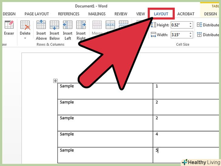 Клацніть по вкладці "Макет".ви знайдете її праворуч на панелі вкладок (в Windows) або поруч з вкладкою «таблиця» (в Mac OS X). Вона відобразиться тільки в тому випадку, якщо курсор знаходиться всередині таблиці.