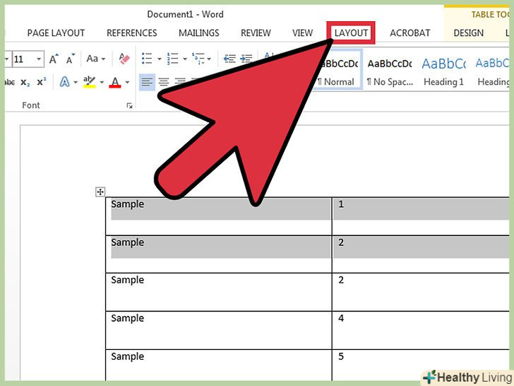 Клацніть по вкладці "Макет".ви знайдете її праворуч на панелі вкладок. Вона відобразиться тільки в тому випадку, якщо курсор знаходиться всередині таблиці.