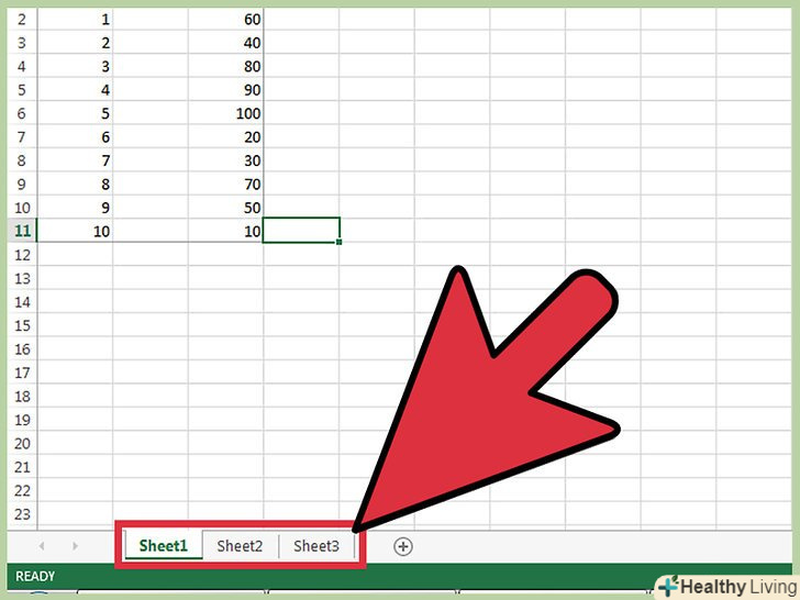 Виберіть аркуш (и), який ви хочете роздрукувати.для цього клацніть по імені листа на нижній панелі. Щоб вибрати кілька аркушів, утримуйте Ctrl (⌘ Cmd в Mac OS X) і натисніть на кожен потрібний лист.