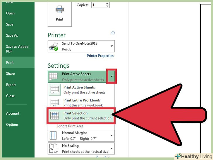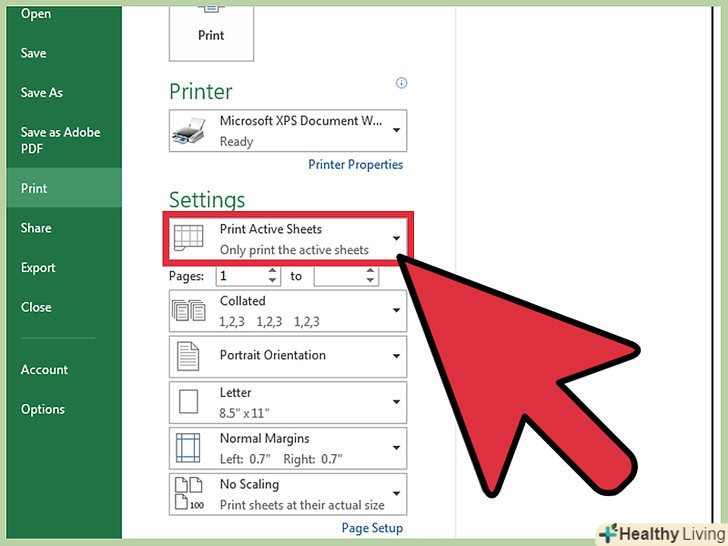 Змініть інші параметри друку.зробіть це в меню, які знаходяться під опцією «надрукувати активні листи». У них можна вибрати орієнтацію сторінки або змінити поля.- Якщо ви вже задали область друку, але вирішили не використовувати її, встановіть прапорець у "ігнорувати області друку".