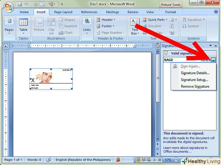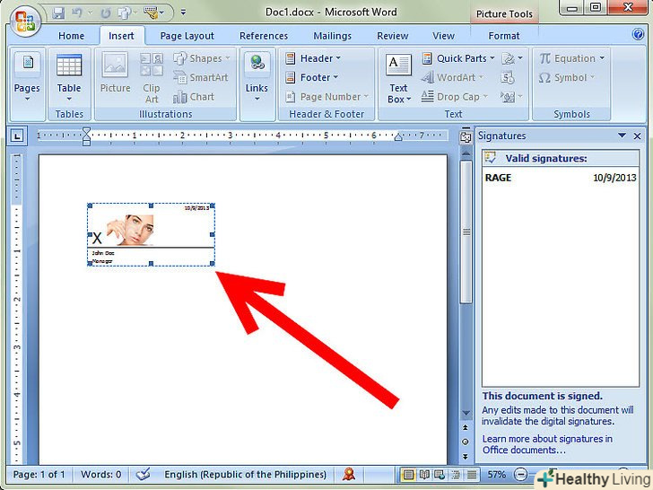 - Після вставки цифрового підпису, Ви нічого не можете додати в документ. Ви повинні видалити цифровий підпис, щоб додати щось. Ви також можете редагувати свій електронний цифровий підпис, коли Вам потрібно.